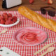 Assiettes En Carton Gouttes d'eau de rose rouge romantique