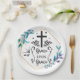 Grace Sur Grace Plaques Papier. Cette conception chrétienne présente une couronne de fleurs bleu chrétien avec un chrétien qui dit : "Grâce sur grâce".