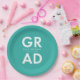 Plaques de graduation personnalisées avec "Grad" en caractères blancs gras avec un arrière - plan turquoise ou couleur de votre choix. Personnalisez les plaques de papier de graduation en ajoutant le nom du diplômé et l'année de graduation. Les plaques de graduation personnalisées sont parfaites pour les fêtes de fin d'études secondaires et collégiales.