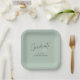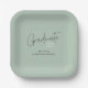 This modern graduation paper plates feature trendy, handwritten-style typography and space for the graduate’s name on a sage green background.
