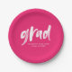 Add a personalized touch to your graduation party with graduation paper plates. The graduation paper plates display "grad" en white painted lettering with a hot pink background or color of your choice. Personalize the hot pink graduation paper by adding the graduate's name and graduation year.