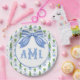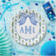 Ce motif topiaire est composé d'un arrière - plan à motif en treillis bleu et vert très chic avec un arc à rayures bleu et blanc coordonné. Vous pouvez personnaliser avec vos initiales monographiques.
