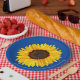 Assiettes En Carton Grand tournesol jaune sur Arrière - plan bleu