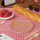Assiettes En Carton Grandes ondes rétro en orange, rose et vert