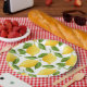 Lumineux citrons, grandes assiettes en papier pour une fête ou un barbecue.