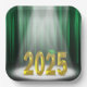 Gold 2025 texte dans l'attention sur la scène avec rideau vert arrière - plan pour la fête de graduation