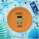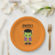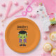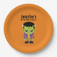 Plaques de papier d'anniversaire d'Halloween avec une image d'Halloween amusante avec un monstre Frankenstein vert.