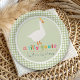 Whimsical Silly Goose baby shower paper plates featuring a charming goose illustration, colorful rainbow lettering “a silly goose is almost on the loose”, and a modern bright sage green plaid background. Perfect for celebrating a mama to be. This adorable gender-neutral design is perfect for a goose themed baby shower, farmhouse or farm baby shower, or cute storybook baby shower theme.