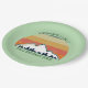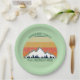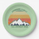 Plaques en papier retrouvailles familiales personnalisées cool pour un cabine d'automne ou une rencontre en plein air avec des cousins, des tantes, des oncles et des grands-parents. Invitation toute l'équipe avec votre nom de famille et l'année en vert autour de la belle image coucher de soleil d'automne sur les montagnes et les arbres. Grande assiette de voyage de camping de groupe personnalisé.