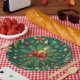 Assiettes En Carton Green Pattern Gold Candle Poinsettia Flower