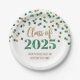Classe graduation personnalisable de 2025 assiettes en or glamour et confetti vert motif et élégant texte en lettres de style.