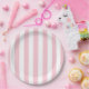 Assiettes En Carton Grilles Verticales Bébé Rose Et Blanc Gratté