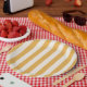 Assiettes En Carton Grilles Verticales Moutarde Jaune Et Blanc Gratté