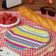 Assiettes En Carton Gris complexes -Turquoise, Jaune, Rose et Blanc