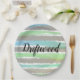 Assiettes En Carton Gris de bois clair Vert rayures Aquarelle