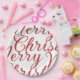 Célébrez et ajoutez du confort à votre décor de vacances avec le design Big Fancy Red Script Joyeux Plaques de papier de Noël. Salutation de Noël festive pour la famille, les amis. Un cadre de table amusant qui frappe les accords de vacances. Profitez des autres produits de Zaralla avec le thème de l'horloge Cuckoo Nutcracker. Joyeuses fêtes ! Rouge traditionnel et blanc