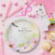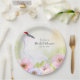 Cette assiette personnalisée présente une aquarelle peinte à la main d'une élégante grue couronnée entourée d'anémones douces roses, violettes et pêches, créant un design romantique et inspiré de la nature, idéal pour une fête de mariage ou une célébration de mariage. La grue symbolise la dévotion et l'harmonie, tandis que les délicates fleurs reflètent la beauté et les nouveaux débuts. Personnalisée avec le nom de la mariée, cette assiette ajoute une touche raffinée et significative à la table de célébration.