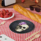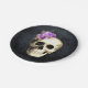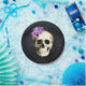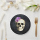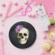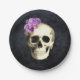 Servez vos invités de fête sur cette plaque de papier crâne gothique floral avec un crâne blanc accentué d'un beau rose violet sur un arrière - plan de texture noire. Parfait pour votre fête d'Halloween ou évènements à thème gothique.