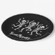 This paper plate is shown in a festive Halloween skeleton Bone Appetit print design.