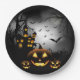 Assiettes En Carton Halloween - Éffrayant Citrouille gris lune - All O
