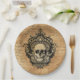 Ces plaques hantantes en papier Halloween Vintage présentent un cadre orné avec un motif crânien au centre sur un arrière - plan de note manuscrite brun.