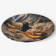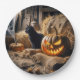 Assiettes En Carton Halloween Jack-o-lanterne et chat en grange