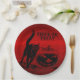 Plaques de papier rouge Citrouille de la fête d'Halloween Malin Chat noir. Unique, beau, design élégant. Facile à personnaliser. Le style de police, la taille et les couleurs peuvent être modifiés. Des éléments correspondants sont disponibles.