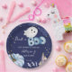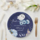 Petit boo Halloween regarder un boo baby shower de vaisselle assiettes personnalisées en papier. Un bébé fantôme citrouille mignon chandelles d'aquarelle sur une nuit étoilée sombre arrière - plan pour le baby shower à thème Halloween.