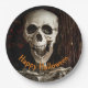 Les assiettes de la fête en papier Halloween amusantes sont légèrement déplaisantes, assez drôle photo de squelette riant avec du texte personnalisable