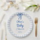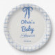 Assiettes En Carton Hand Drawn Blue Gingham Bow Baby Shower