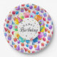 A Colorful Happy Birthday Paper Plate Design With Hats, Balloons and Gifts