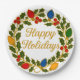 Assiettes En Carton Happy Holidays Wreath Christmas Lights and Holly