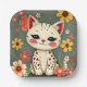 Assiettes En Carton Happy Spotted Kitty with Flowers