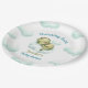 Plaques de papier baby shower moderne avec un bébé dinosaure mignon sur les nuages en bleu et vert. Personnalisez facilement le texte. - Kate Eden Art