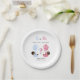 These gender reveal party plates feature an adorable African American baby girl in pink and baby boy in blue, both floating with balloons next to a playful question mark. Ideal for a “he or she” themed celebration, the design adds charm and color to your table setup. Personalize the text to suit your event.