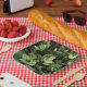 Plaque de papier vert fleuri.