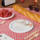Fleurs en terre cuite et assiettes en papier d'herbe des pampas