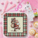 A Green Red Plaid Square Paper Plate Of A Cute Santa Claus For Luncheons Or Dinners