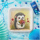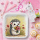 Un mignon hérisson tient un bouquet vibrant entouré de fleurs rouges en fleurs.