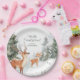 Ces plaques en papier présentent une charmante scène de forêt hivernale aux aquarelles pastel douces, avec un adorable cerf et son faon entouré d'arbres à feuillage persistant enneigés. Le design, qui fait écho à l'enchanteresse invitation Winter Onederland, crée un cadre boisé confortable parfait pour une fête de premier anniversaire. Ces assiettes ajoutent une touche hivernale magique à toute table de fête, capturant la douce beauté d'une forêt recouverte de neige, idéale pour un anniversaire d'hiver mémorable et festif.