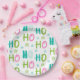 Adorable modern “Ho Ho Ho” in pink and teal font with coordinating stars create this perfect design for your holiday table.