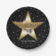 Plaques de papier de fête d'anniversaire noir Hollywood Gold Star. Customisez avec tout texte. Des éléments correspondants sont disponibles.