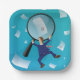 Un homme d'affaires avec une loupe au milieu des papiers. Ce design semble vraiment efficace sur ces Plaques de Papier