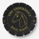 Cheval course derby course de soirée plate, avec un portrait de cheval élégant sur un arrière - plan de rosette noir. Tout le texte est personnalisable, vous pouvez donc ajouter des noms ou des dates, etc.