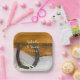 Personnalisez ces plaques de papier Mariage Western Perls et Horseshoe décontracté mais classe avec les noms de la date de la mariée, du marié et de la cérémonie de mariage. Ces assiettes jetables nuptiales à thème équin chic rustique présentent une photo pittoresque d'un fer à cheval rouillé, voile nuptial et collier de perles blanches avec un arrière - plan en bois de grange brun patiné.