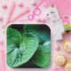 Des feuilles hosta verdoyants scintillant avec des gouttes de rosée font une étonnante plaque de papier. Ils seraient parfaits pour une fête de jardin, un mariage extérieur ou une fête.