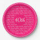 Assiettes En Carton Hot rose blanc 40e Joyeuse Typographie d'anniversa
