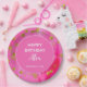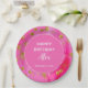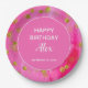 Rose chaud et amusant avec parties scintillant d'or personnalisées plaques de papier d'anniversaire personnalisées avec votre nom et votre date de fête. Les couleurs de texte, de police et de police sont toutes entièrement personnalisables, donc mélangez les choses et faites-le vous-même.