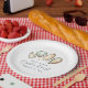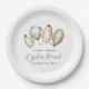 Ajoutez une touche spéciale à votre rôti d'huîtres avec ces plaques en papier de style nautique cool illustrées d'huîtres et de perles en crème douce et aquarelle d'aqua. "Oyster Roast" apparaît sous la forme de lettres chic, ainsi que deux lignes de texte personnalisé.