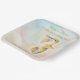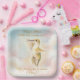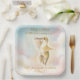 Celebrate the upcoming arrival of your little one with this whimsical and elegant watercolor hummingbird square plate. Featuring a delicate hummingbird soaring through soft pink and peach clouds with shimmering gold-style accents, this square plate is perfect for a nature-themed or gender-neutral baby shower.